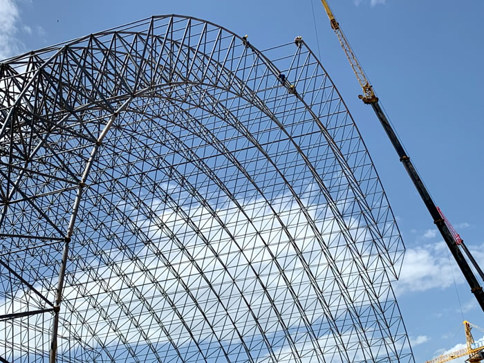 (2)网架加工前应对现场尺寸进行复测,确认无误后方可进行加工、安装;网架制作、运输、安装应遵守《空间网格结构技术规程》JGJ7-2010、《钢网架玉林螺栓球节点》JG/T 10-2009、《钢网架玉林螺栓球节点用高强度螺栓》 GB/T 16939-2016、《玉林钢结构玉林工程玉林施工规范》 GB50755-2012、《玉林钢结构玉林工程施工质量验收标准》 GB50205-2020。